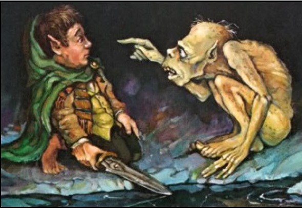 The first major landmark of the second act is the first pinch point. This applies pressure to your character, and reminds readers of the central conflict or your story. The first pinch point happens around 3/8 of the way through your book, or about 38%. In Harry Potter, this is where Harry faces the Sorting Hat, and the possibility of being put into Slytherin. It comes early in The Hobbit, but the first pinch point is the riddle-game with Gollum and the escape from the goblin tunnels. Gollum is an agent of dark forces, because of the Ring, and Bilbo must defeat him without any help from the dwarves or Gandalf. It is perhaps a good example, because it’s only about 30% of the way through the book. If you’re a novelist, don’t get hung up on hitting these points exactly. Close is fine for horseshoes, hand grenades–and novels.