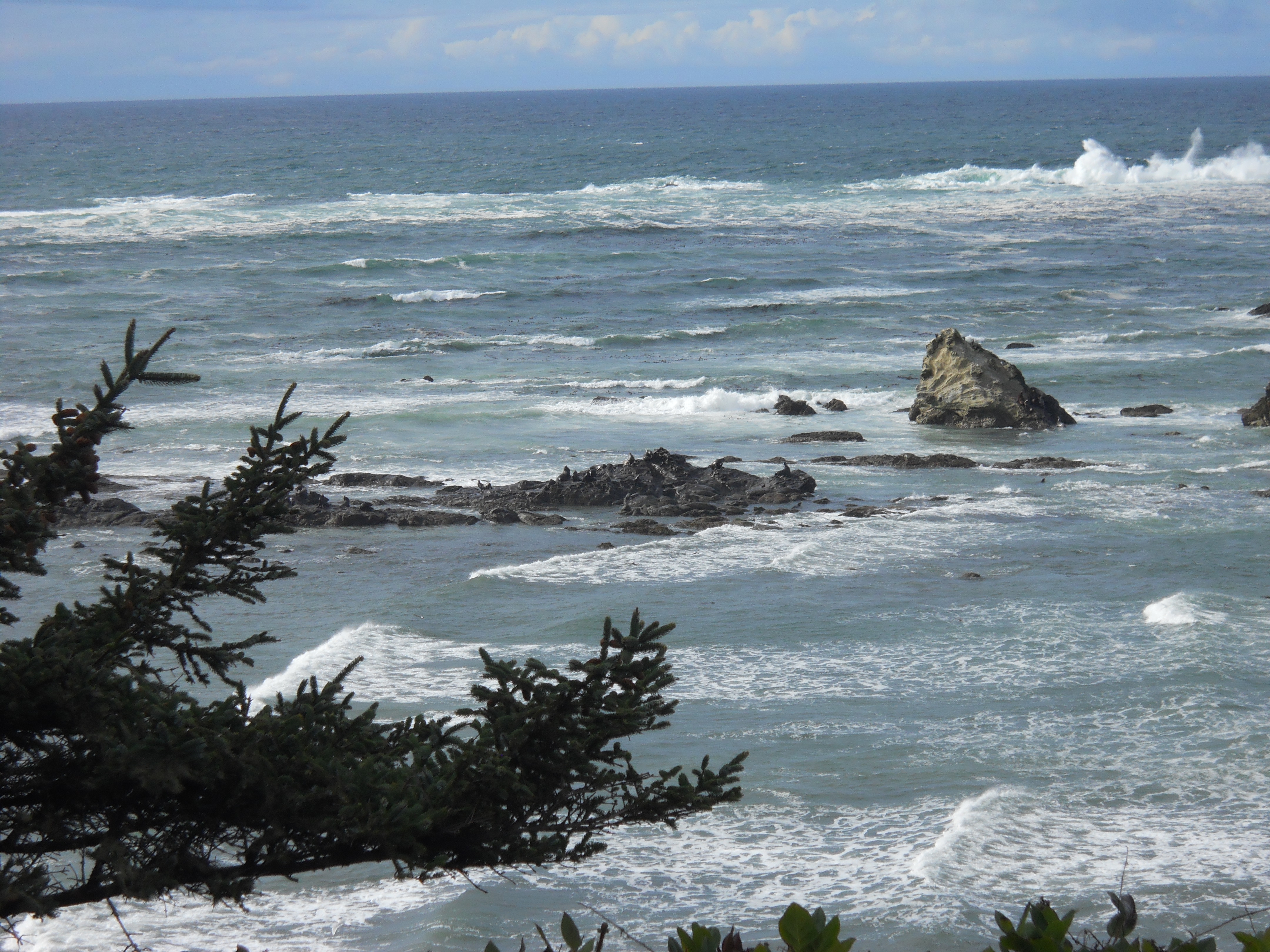 183We saw sea lions, harbor seals, and many pelicans, which I always enjoy. Okay, they’re small, but there are sea lions in that photo. Southern Oregon has forest right down to the edge of the beach, and it’s truly gorgeous.